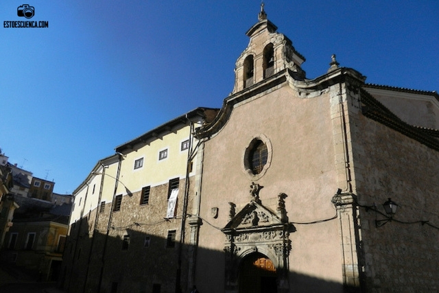 Después del mirador, seguimos la calle, hasta llegar justo a la antigua Iglesia de Santa Cruz de Cuenca, del Siglo XVI y reformada en el XVIII. Fue una de las primeras parroquias que hubo en Cuenca. La Iglesia no se puede visitar todavía, pero pronto en ellas se expondrán parte de la colección del museo de Cuenca y podremos disfrutarla por dentro. Lo más destacado es su portada, donde se encuentra una inscripción que pone «O Crux aves pesunica», procedente de la antigua iglesia de Santa María la nueva que se encontraba en las cercanías de la Torre de Mangana, de la que ya os he hablado en otra de las entradas de blog.
