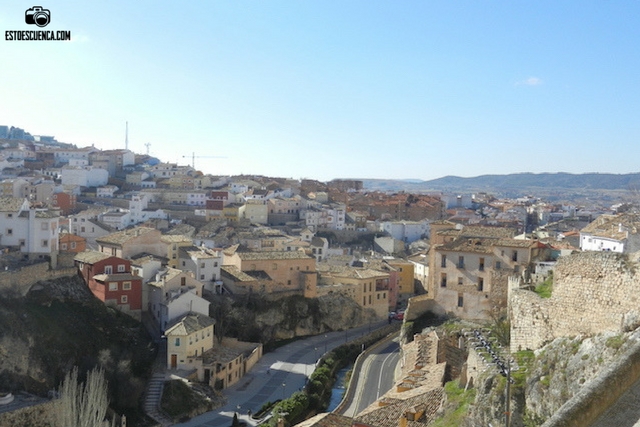 Subidos los primeros escalones lo primero que nos encontramos es con los restos de la antigua muralla medieval de Cuenca, subiendo la calle un poco más, si echamos la vista atrás, nos encontramos con una vista al Barrio de Tiradores de la ciudad y su iglesia del Cristo del Amparo.