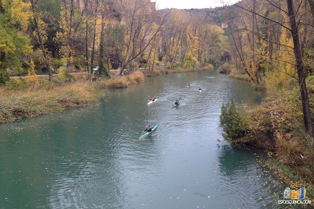 Ya llevamos un rato andando y vemos en el río a un montón de piraguas y piragüistas, en Cuenca hay mucha afición a este deporte y que mejor escenario para practicarlo que los remansos del Río Júcar que se adorna en otoño con las hojas amarillas y ocres de los chopos.
