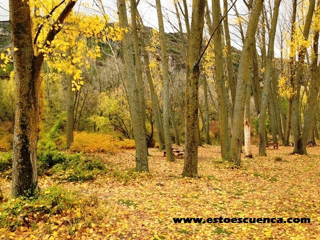 Pronto llegamos a una gran explanada, donde en Jueves Lardero, muchos jóvenes conquenses van allí a pasar un día de campo el jueves que precede al carnaval. Aquí os encontraréis con que el sendero se bifurca para hacer otra ruta; nosotros seguiremos recto, es decir, el sendero del río.