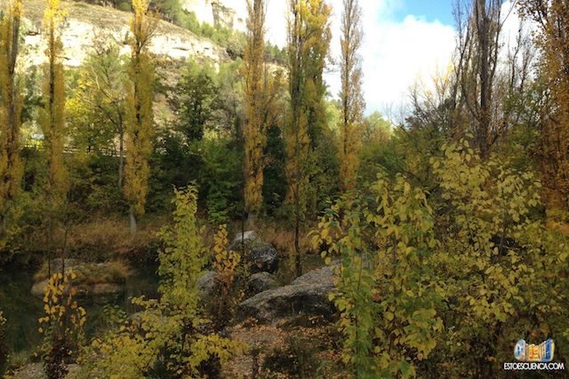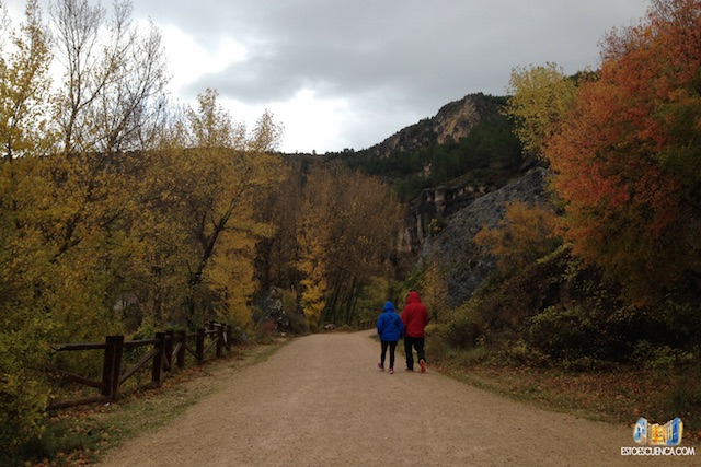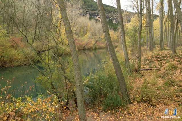 Una vez nos hayamos regocijado la vista en el puente de los descalzos, seguiremos el camino recto siguiendo la margen derecha del Río Júcar. Como veréis, es un camino muy bien acondicionado rodeado de naturaleza por todas partes, que en otoño, se llena de hojas multicolor. Los sonidos que os acompañan en el paseo son el de las hojas cayendo, los pájaros cantando, el viento que os susurra en el oído la belleza de la Hoz del Júcar; el otoño en Cuenca es espectacular.